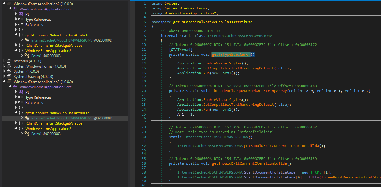 1 pointThis is update to my last post, I've decided to continue working on my unpacker and was able to figure out how to decrypt operands, when it comes to callinternal it's operand, when decrypted, tells you which method to execute, the next problem I've gotten was homomorphic encryption, but it wasn't a hard nut to crack all you have to do is bruteforce the key and use it to decrypt method body. With all this I've finally made the devirtualiser and was able to unpack the assembly.Then I ran it through de4dot to clean it up a bit. And then I have manually taken care of debug code(I haven't removed it I've just put if(true)return; at the beginning of each debug method). Here is a video of me unpacking it : https://streamable.com/gynmi9 EazUnpack.mp4 The file password is superfrog. For some reason I couldn't upload the raw exe so I zipped it ggggg-unpacked-cleaned.zip1 point- .NET Reactor v6.3